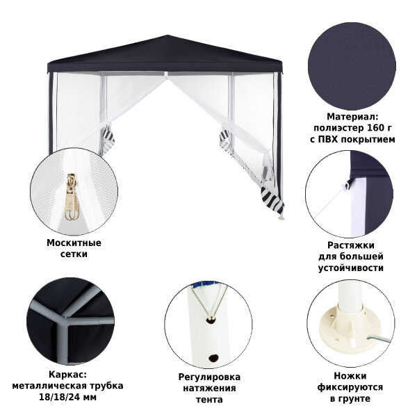 Шатер садовый Green Glade 1086, 3х3х2,5м, полиэстер, синий