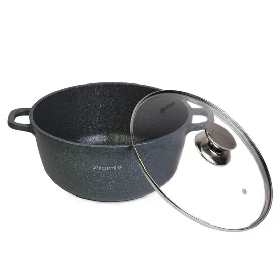 Лучшие цены. астрюля с антиприагрным покрытием "мрамор" Kamille — Благодаря прочному антипригарному покрытию, кастрюля устойчива к механическим воздействиям, за счет чего значительно увеличивается срок её службы. Кастрюля нагревается равномерно, не создавая перегретых участков и холодных краев, даже в тех случаях, когда процесс приготовления еды идет на небольшом огне. В результате сокращается время приготовления блюда. Магазины в вашем городе.