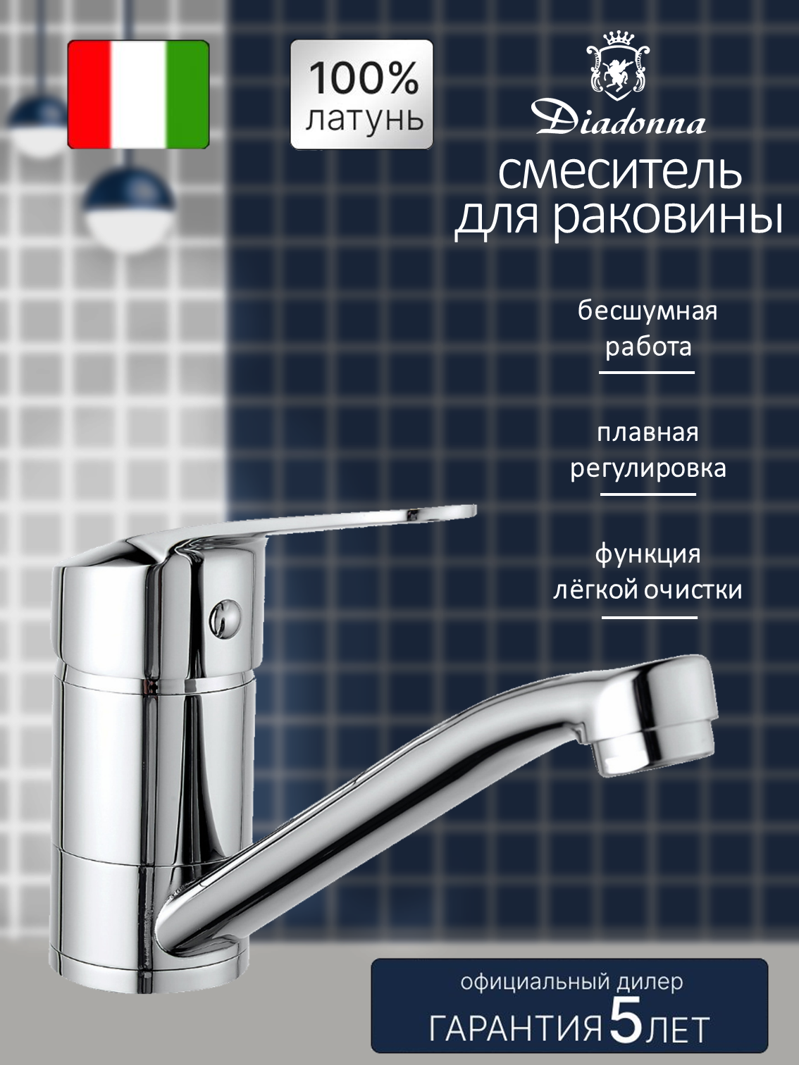 Смесители Смеситель на раковину Diadonna D80-448128 одноручковый с поворотным изливом, картридж 40 мм, крепление гайка