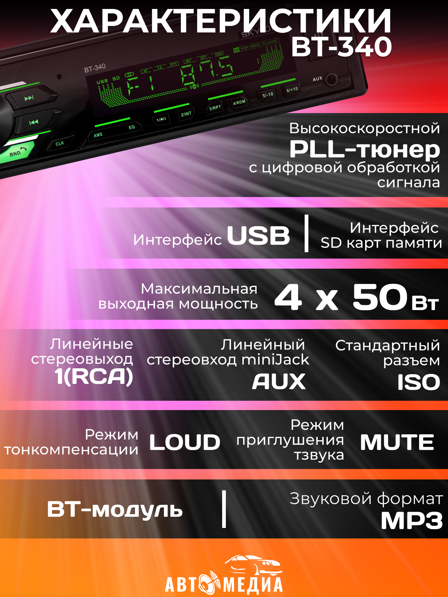 Автомагнитола Skylor BT-340