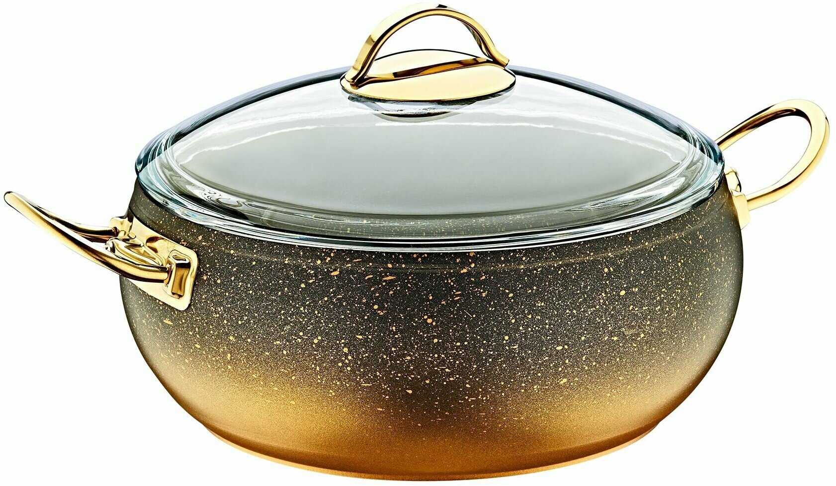 Кастрюли Набор посуды O.M.S. Collection с антипригарным покрытием из 7 предметов. Цвет: черно-золотой.