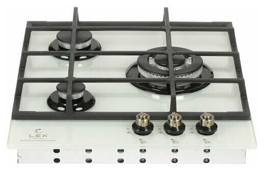 Лучшие цены. Варочная поверхность LEX GVG 4533C IV LIGHT Варочная панель LEX GVG 4533C IV Light – интересное дизайнерское решение. Компактная (45х51см), функциональная и очень симпатичная. На панели установлены три конфорки, две быстрого нагрева (в том числе конфорка ВОК с двумя кольцами пламени) и одна дополнительная. Конфорка ВОК поможет справиться с приготовлением любого кулинарного шедевра, с помощью конфорки «эконом» можно приготовить, например, кофе в турке. Чугунная решетка сплошная, лаконичная и строгая. Магазины в вашем городе.