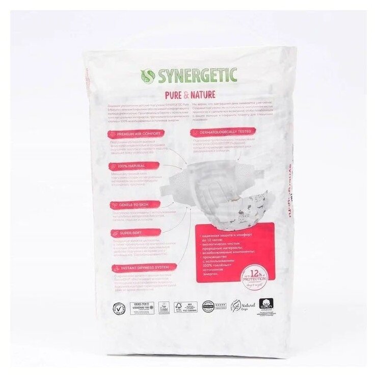 Подгузники SYNERGETIC PURE&NATURE Ультратонкие, дышащие, размер 3 MIDI, (4-9кг) 49шт