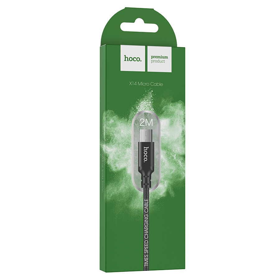Кабель Hoco X14, Micro USB - USB, 2 А, 2 м, быстрая зарядка, оплётка нейлон, чёрный