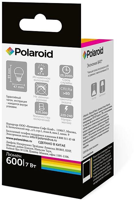 Лампочка Светодиодная лампа Polaroid 220V G45 7W 3000K E27 600lm