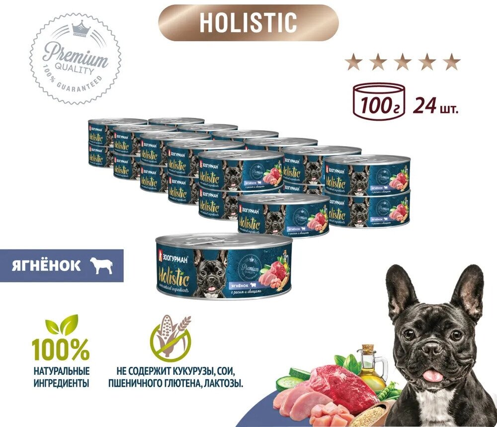 Корм для собак Зоогурман Holistic консервы для собак Ягнёнок с рисом и овощами 100г (24штуки)