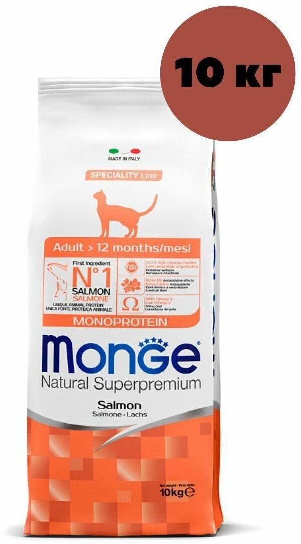 Корм для кошек Monge Adult Cat Salmon Сухой корм для кошек, Лосось 10кг