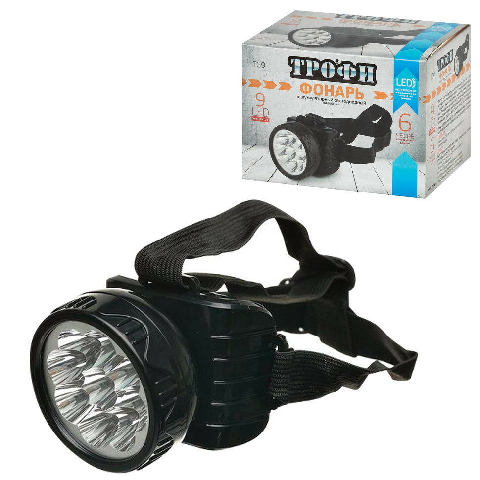 Фонарики Фонарь светодиод налобный Аккум 4V0.9Ah 9LED ЗУ 220В TG9 Трофи