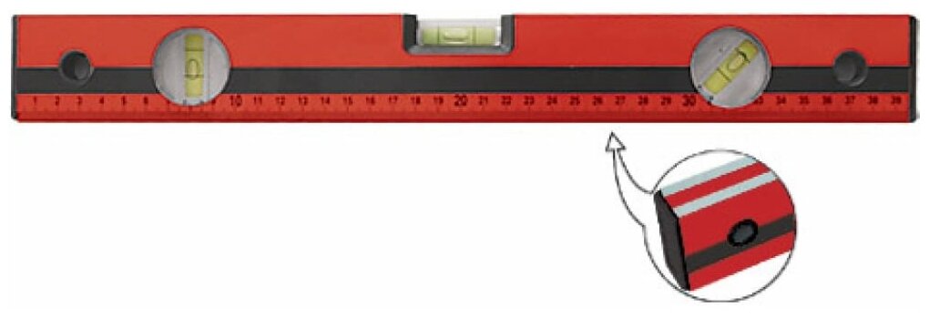 Уровень "Оптима", 3 глазка, красный корпус, фрезерованная рабочая грань, шкала 400 мм 18021