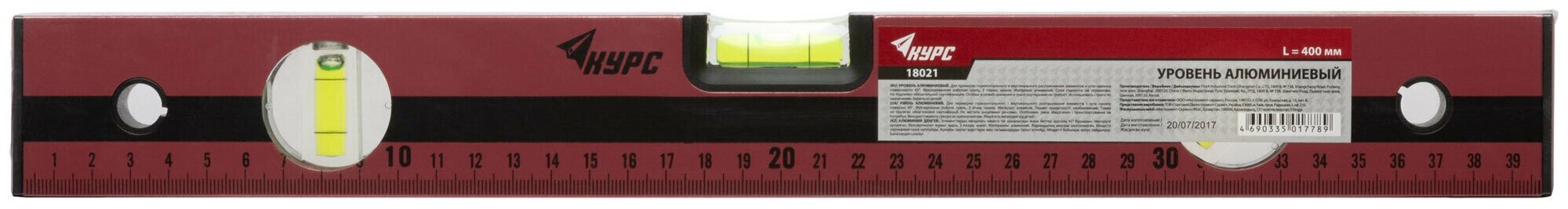 Уровень "Оптима", 3 глазка, красный корпус, фрезерованная рабочая грань, шкала 400 мм KУРС 18021