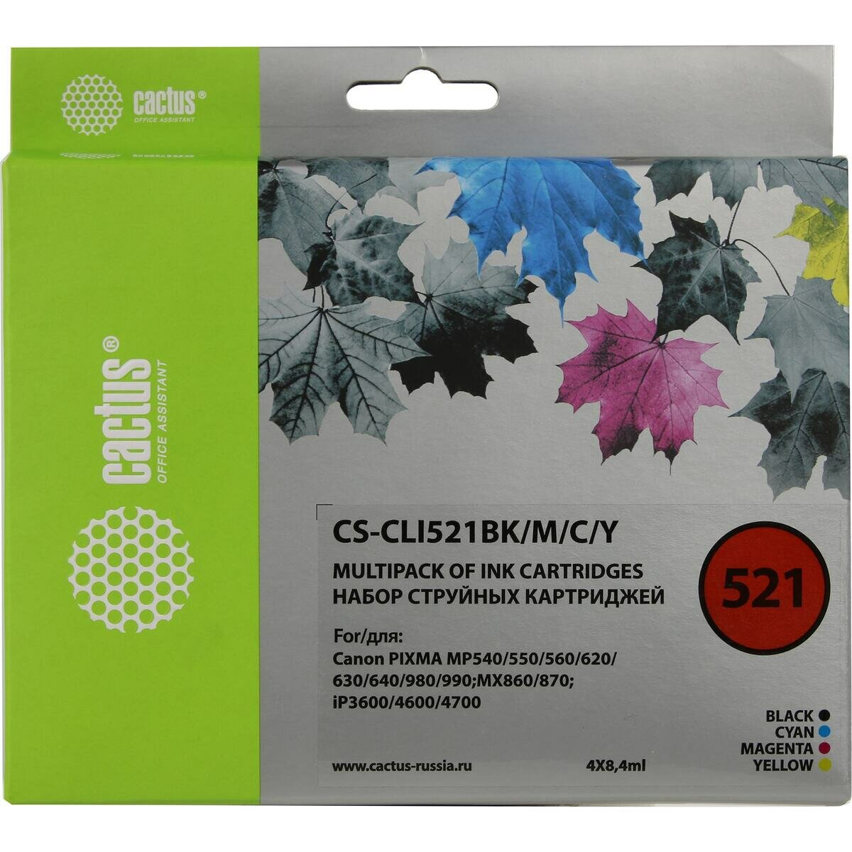 Картриджи Картридж струйный Cactus CS-CLI521BK/M/C/Y черный/голубой/желтый/пурпурный набор (33.6мл) для Canon Pixma iP3600/iP4600/iP4700/MP540/MP550/MP560/MP620/MP630/MP640/MP980/MP990/MX860/MX870