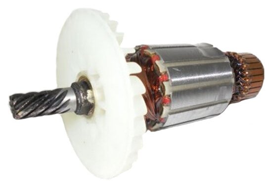 Лучшие цены. Ротор / Якорь для пилы дисковой Хитачи C6MFA, C7MFA, C6SS, C7SS Общая длина - 151 мм. Длина пакета - 40 мм. Диаметр пакета - 41 мм. Диаметр коллектора - 28 мм. Посадка переднего подшипника - 10 мм. Посадка заднего подшипника - 7.5 мм. Расстояние между посадками подшипников - 120 мм. Количество зубьев - 8 шт. Наклон зубьев - вправо. Магазины в вашем городе.