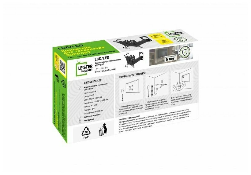 Подставки и крепления Кронштейн (LE`STER LST-101.04 для TV 10"- 32")
