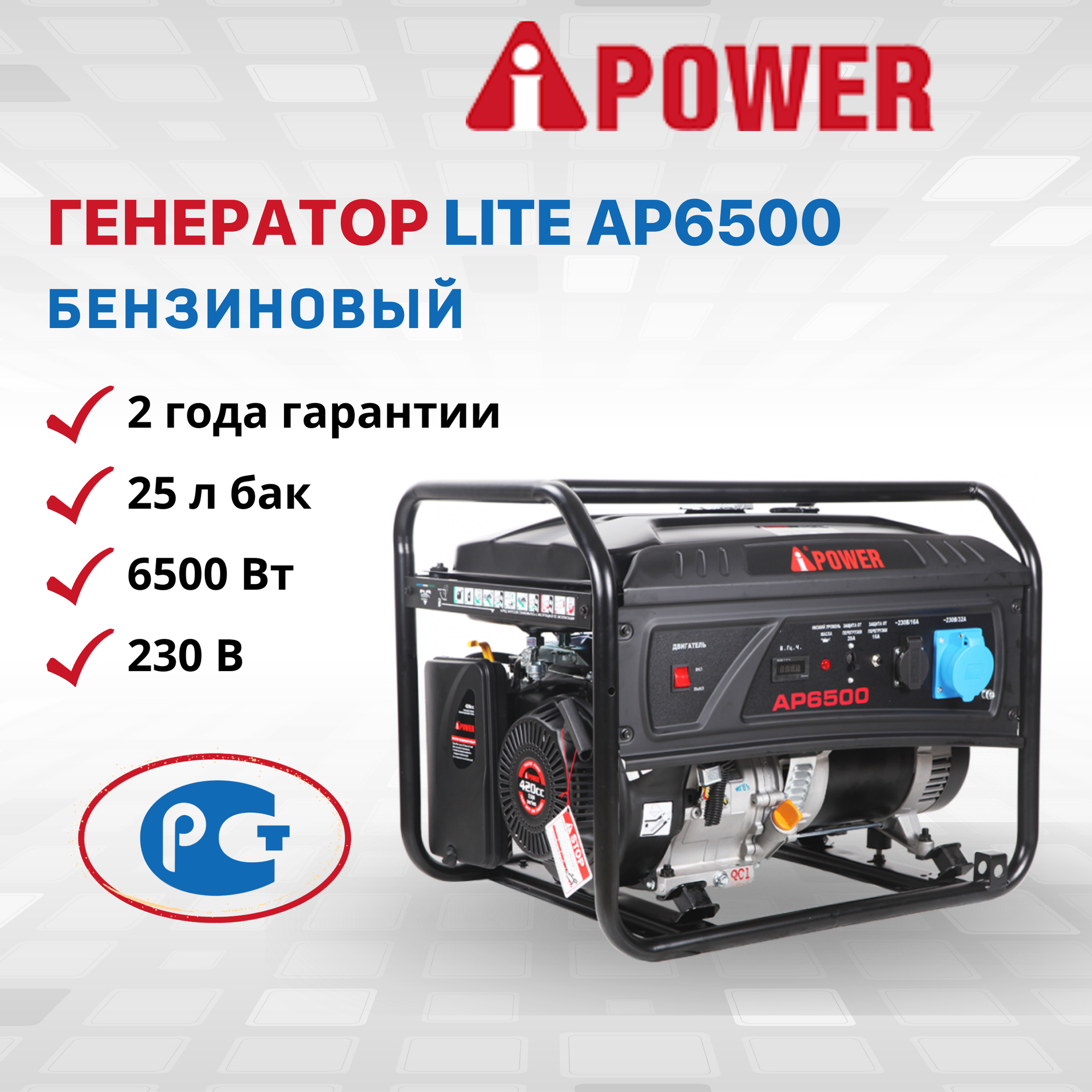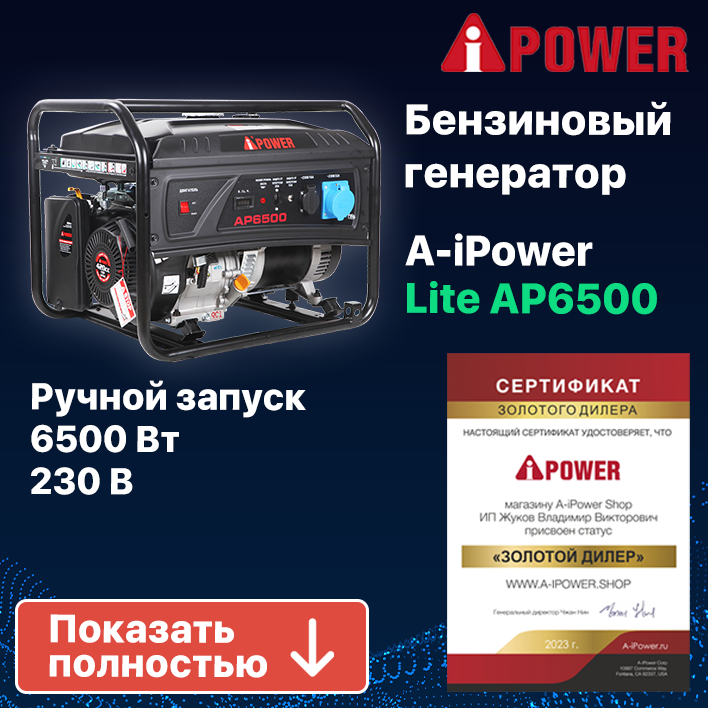 Электрогенератор Комплект Бензиновый генератор A-iPower Lite AP6500 с ручным запуском + Колеса и ручки (20206К)