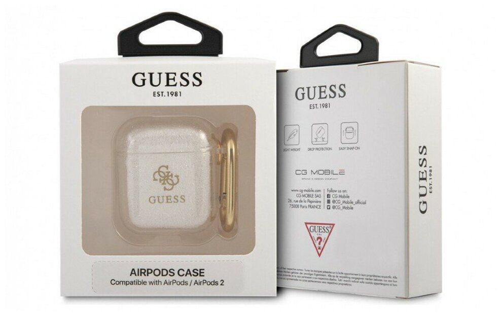 Чехол Guess для Airpods 1/2 чехол TPU with carabin Transparent Glitter 4G Tansp