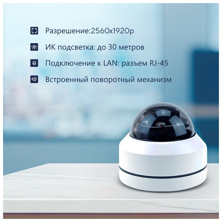 | Конструкция и возможности | POE питание / датчик освещенности / детекция движения / P2P (связь со смартфоном) / аудио вход/выход (1 вход, 1 выход) / ИК подсветка |
