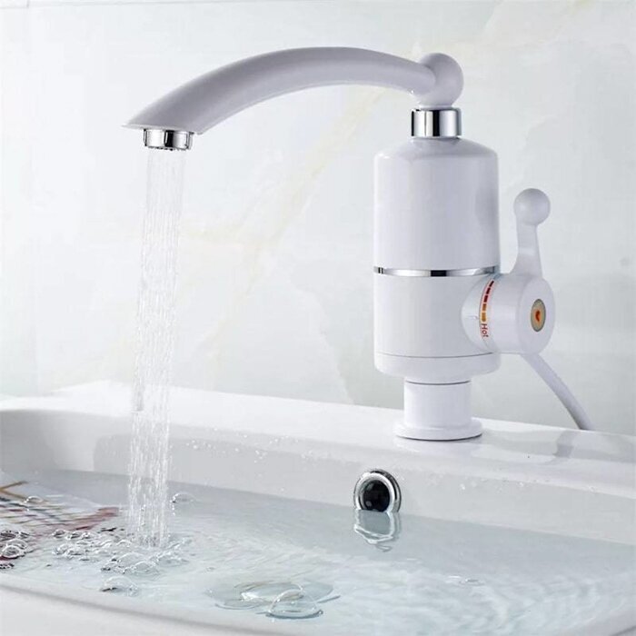 Лучшие цены. Устали от проблем с горячей водой? Кран водонагреватель придет на помощь! Понадобится меньше минуты, чтобы вода была нагрета. Предусмотрена возможность регуляции температуры. Одно мгновение – и электрический кран-водонагреватель обеспечит 60-градусным притоком воды. Такой насадкой очень удобно пользоваться на даче или же дома когда отключают горячую воду. Носик крана поворачивается вправо и влево, поэтому, устройство можно устанавливать как в раковину на одно отделение, так на два отделения. Магазины в вашем городе.