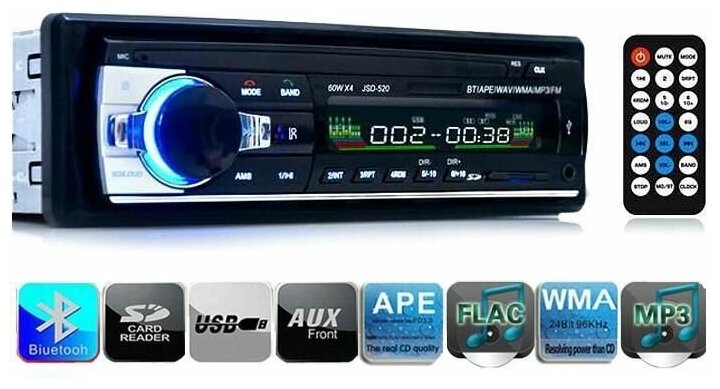 Автомагнитола Автомагнитола 1Din Bluetooth, MP3, USB, AUX, SD, 60W с микрофоном и громкой связью