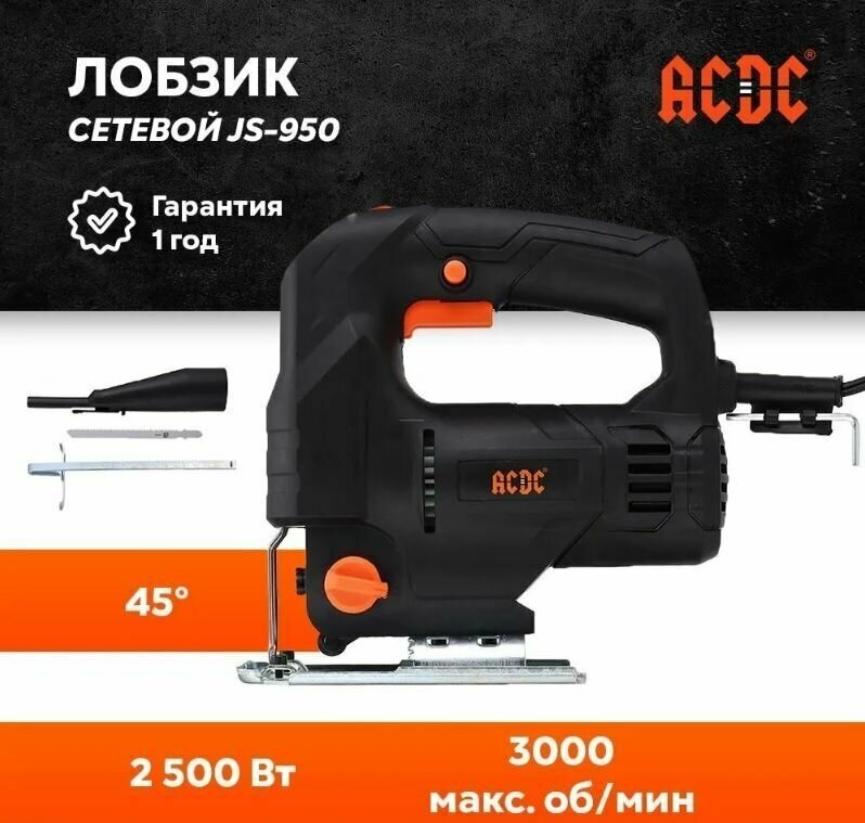 Электролобзики Лобзик электрический ACDC JS-950 (950W, пропил до 100 мм, регулировка оборотов 500-3000 ход/мин)