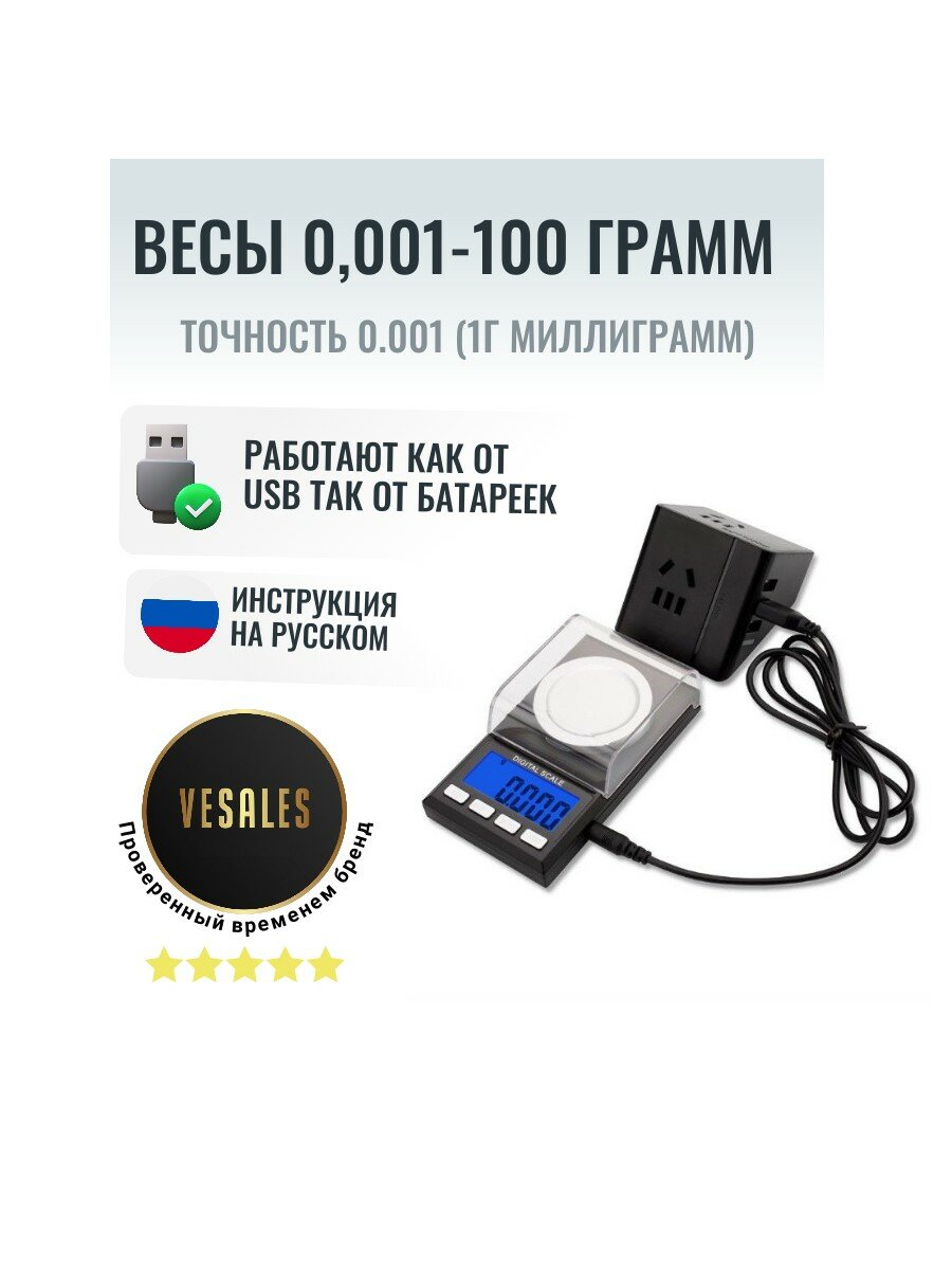 Ювелирные и лабораторные весы Весы высокоточные, лабораторные 0,001-100 грамм +USB