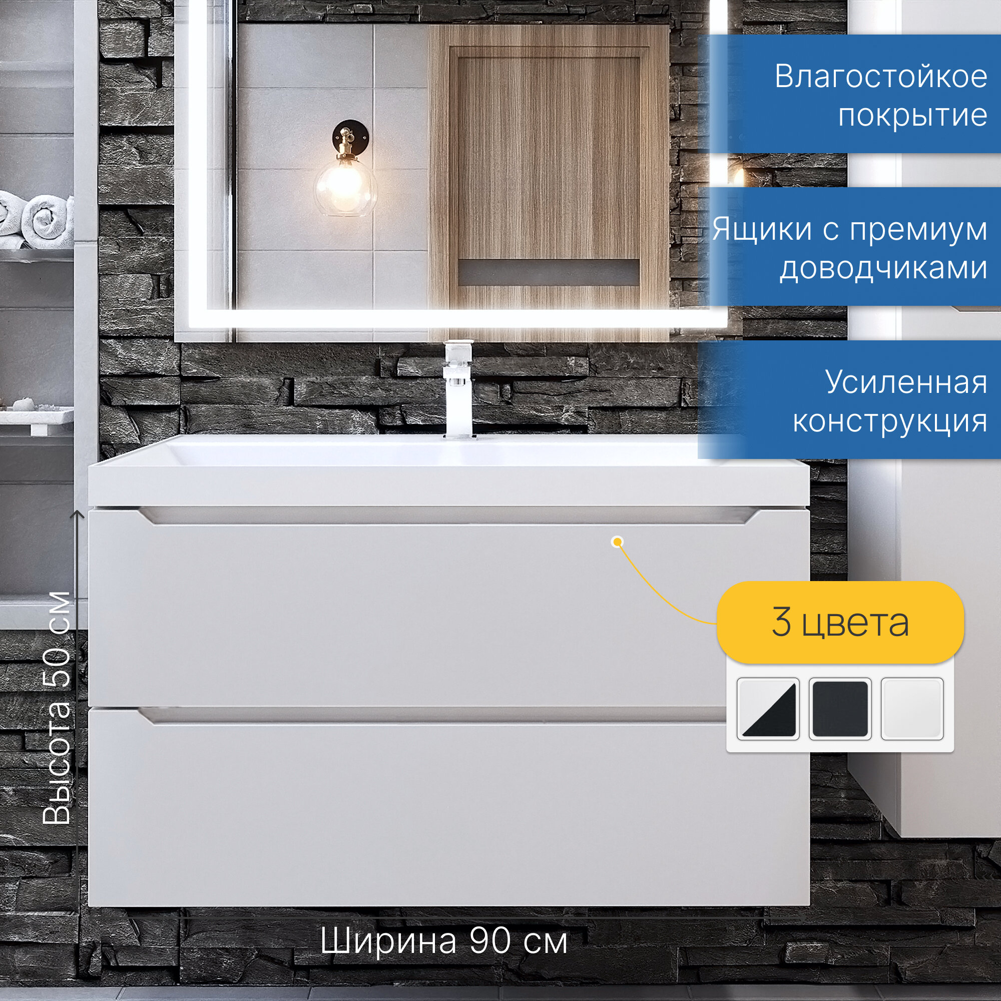 Тумбы под умывальник Тумба под раковину Uperwood Tanos 90 см, подвесная, белая