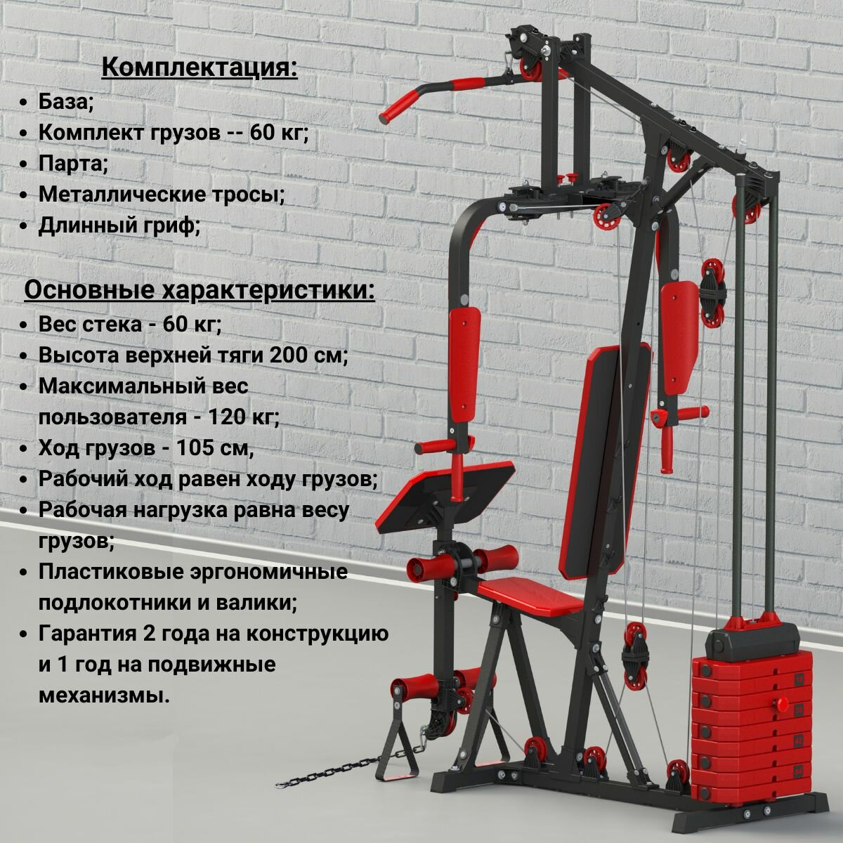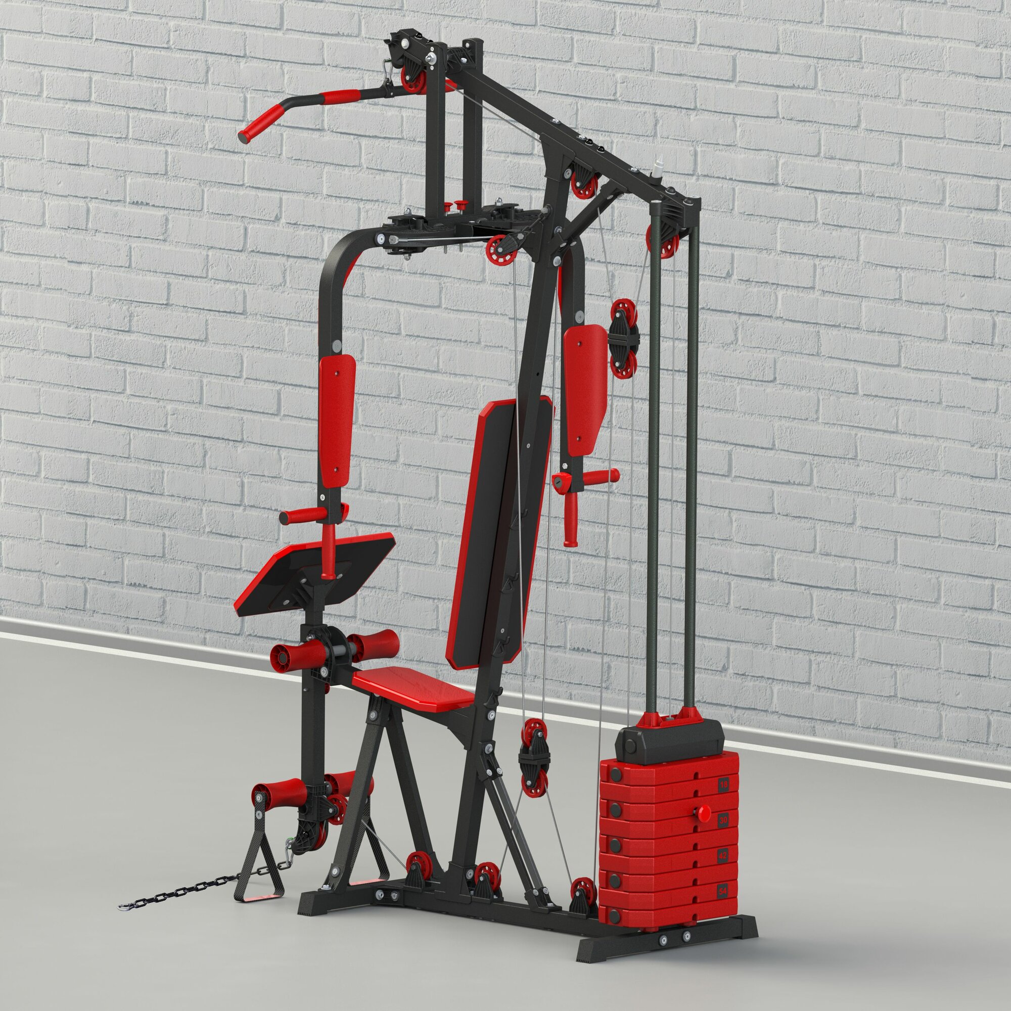 Силовые тренажеры Станция силовая Leco-IT Home, нагрузка 60 кг, черно-красный