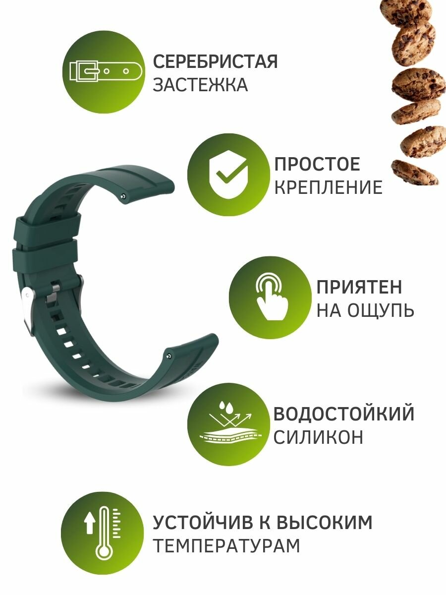 Смарт часы и фитнес браслеты Cиликоновый ремешок PADDA серебристая застежка для смарт-часов Garmin (ширина 20 мм), Dark Green