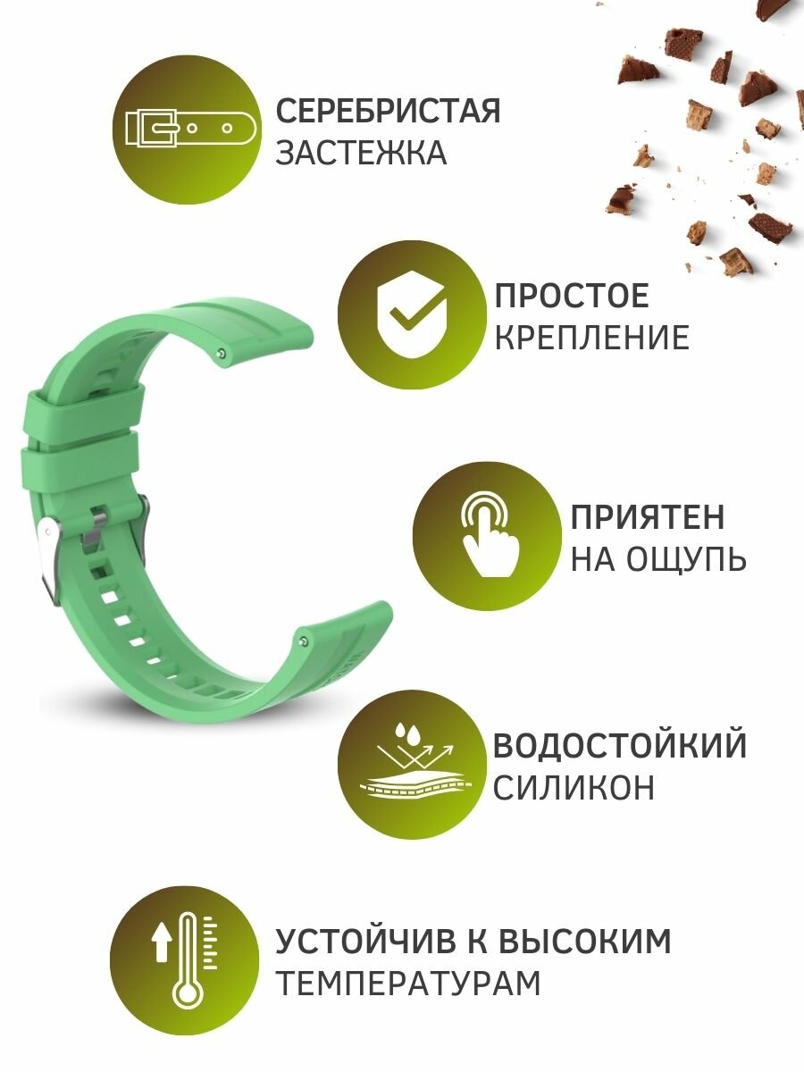 Смарт часы и фитнес браслеты Cиликоновый ремешок PADDA серебристая застежка для смарт-часов Garmin (ширина 20 мм), Mint Green