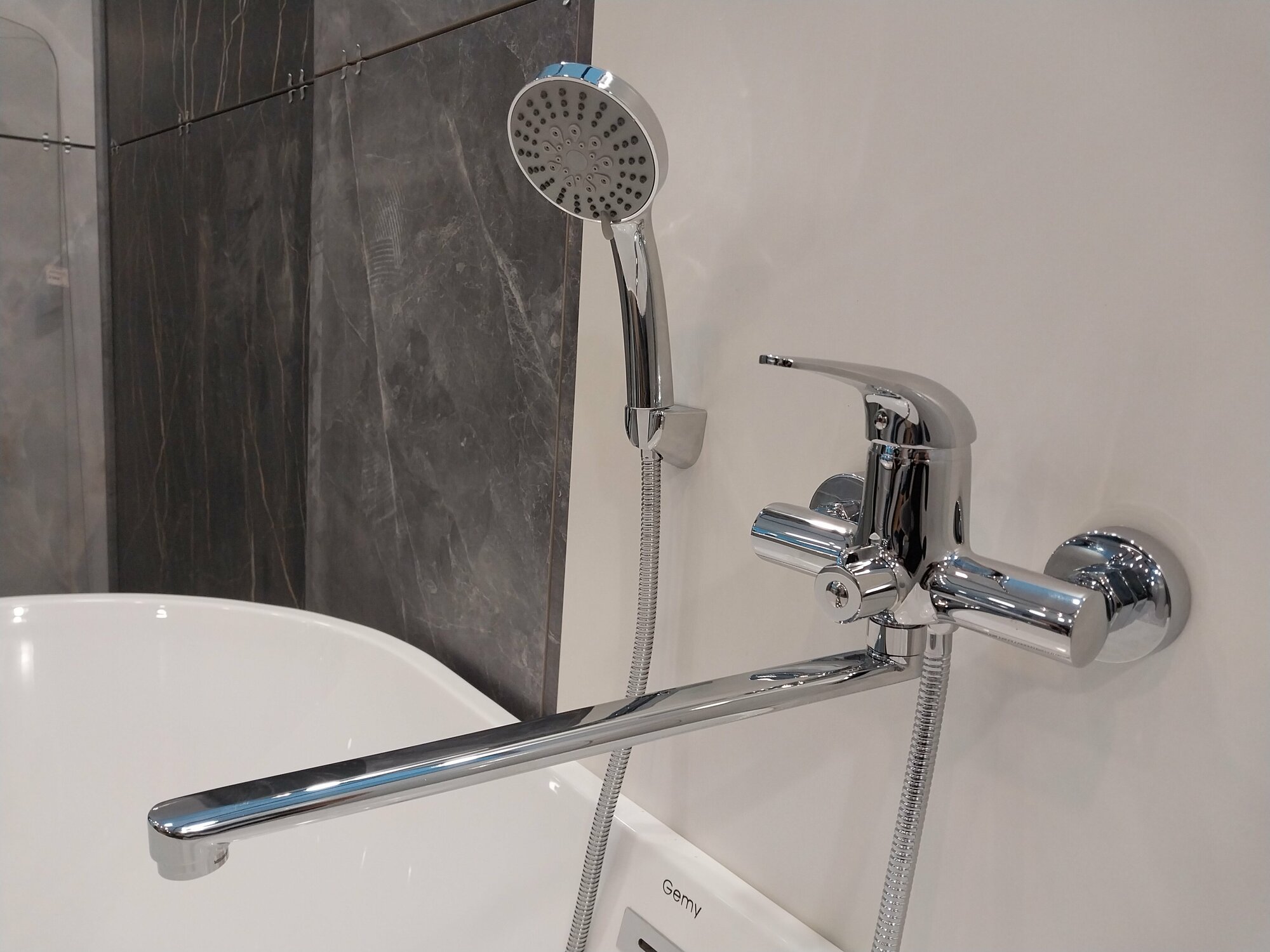 Смесители Смеситель MEGABREEZE для ванны КС-330-002, с изливом длиной 35 см, с мет. шлангом 1.5 м, с лейкой - 5 режимов струй, с кронштейном, коллекция Даймель