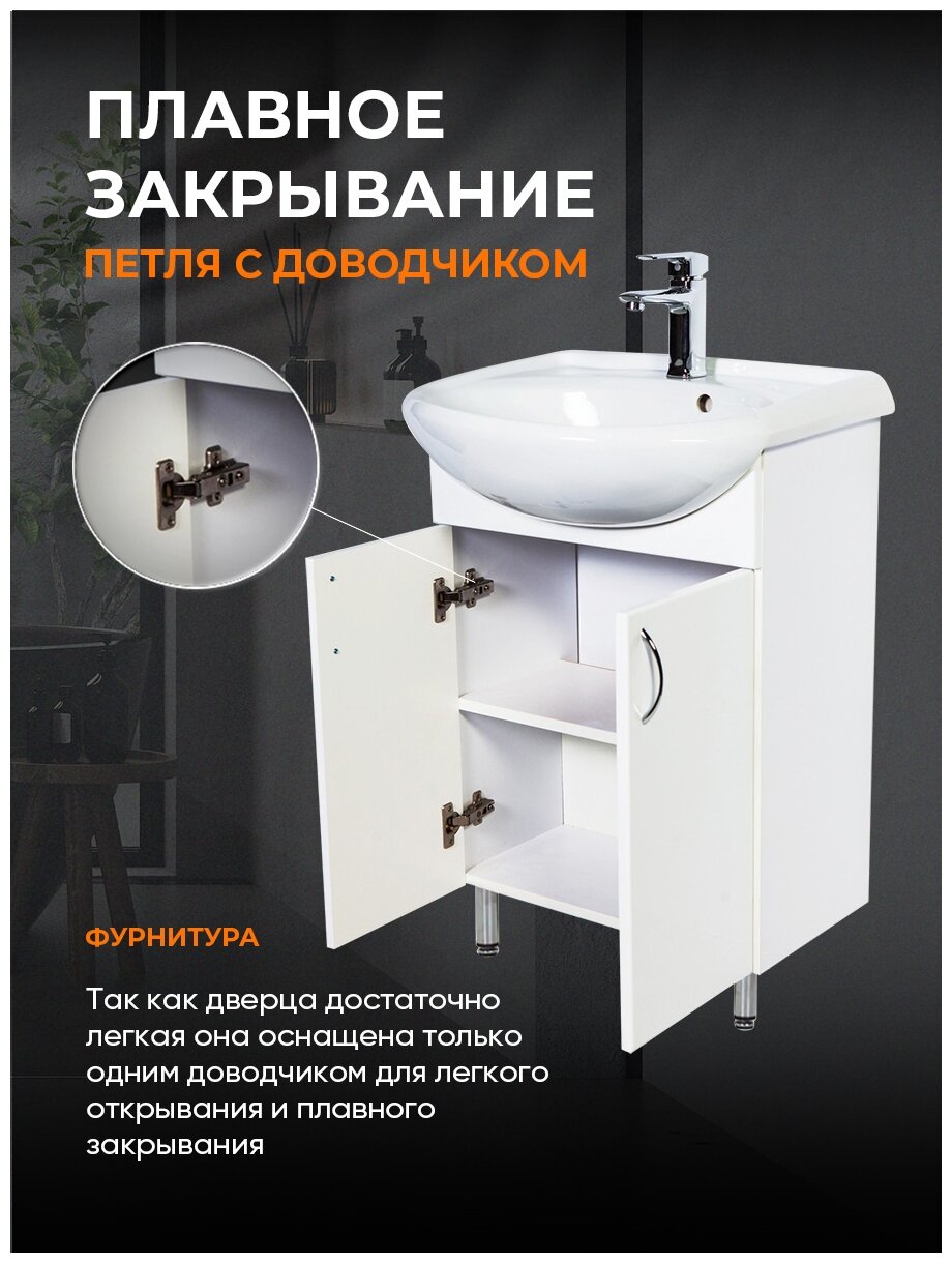 Тумба напольная для ванной комнаты с раковиной, белый глянец Orange Роса Ro-45TUW+RA