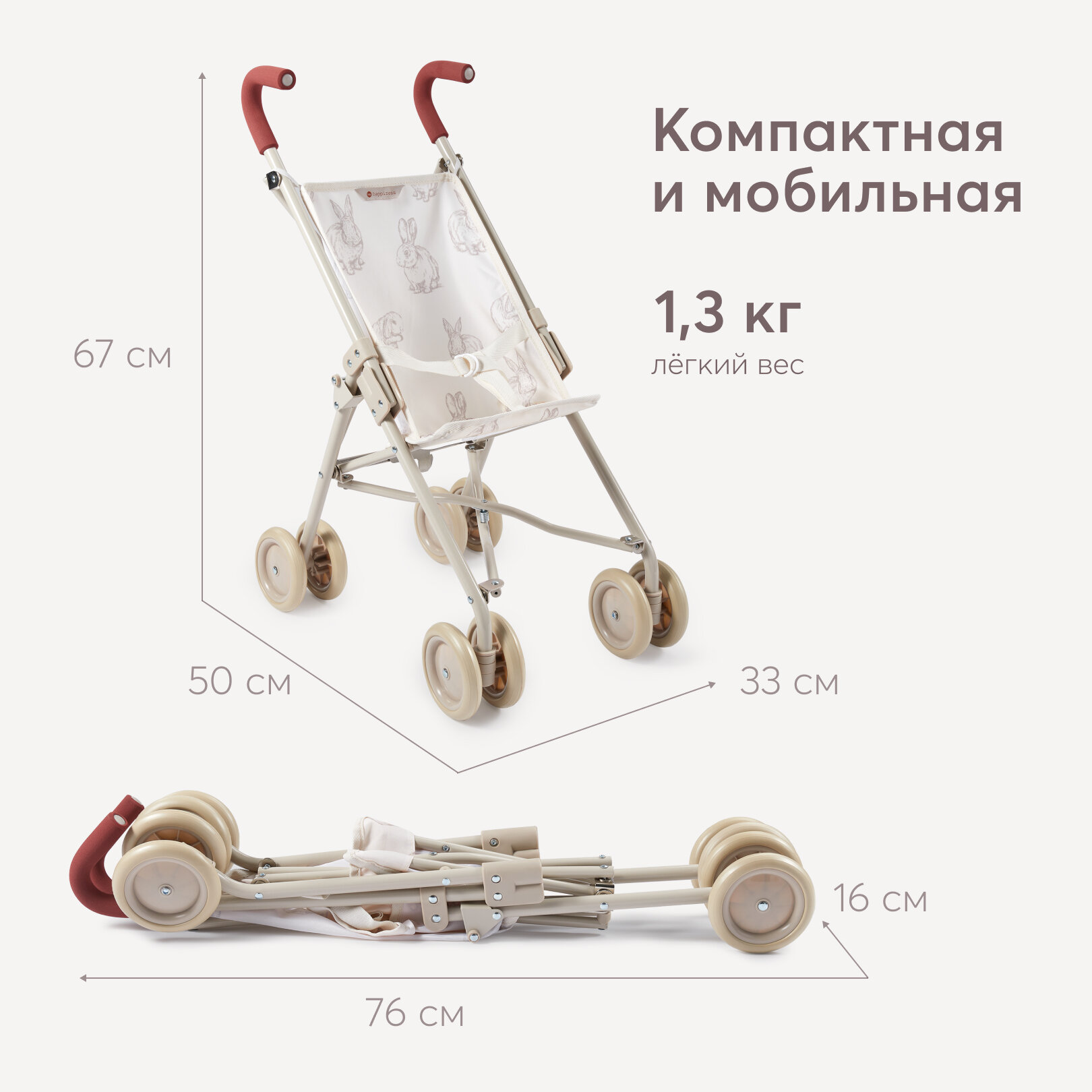 Коляски 331857, Коляска для кукол Happy Baby TWIGLET детская, прогулочная, складная, 4 колеса, бежевая с кроликами
