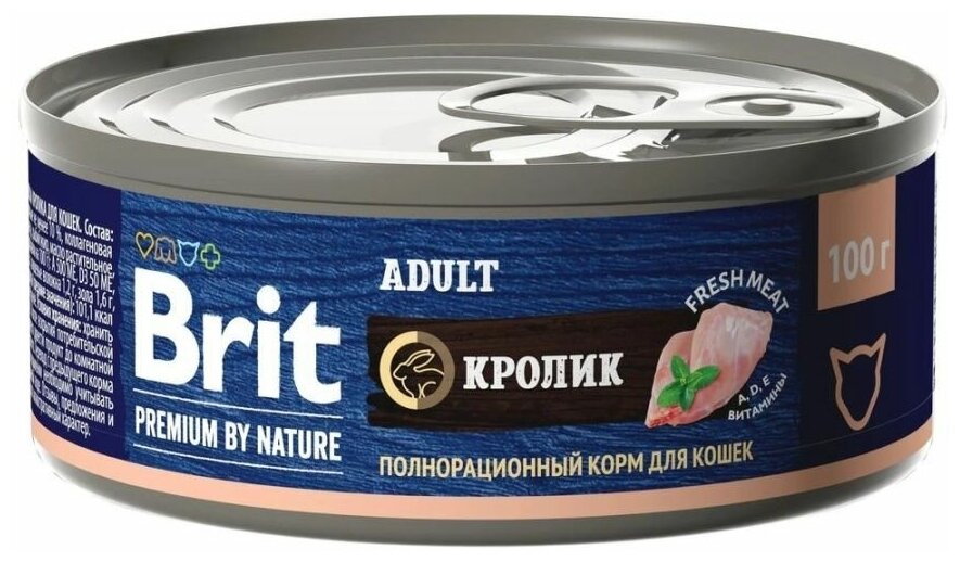 Корм для кошек Консервы для кошек Brit Premium by Nature, с мясом кролика, 100 гр*12 шт