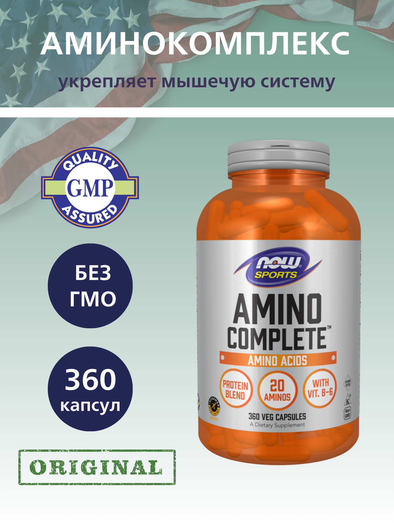 NOW FOODS Amino Complete 20 Aminos (Аминокислотный комплекс) 360 вегетарианских капсул (Now Foods)