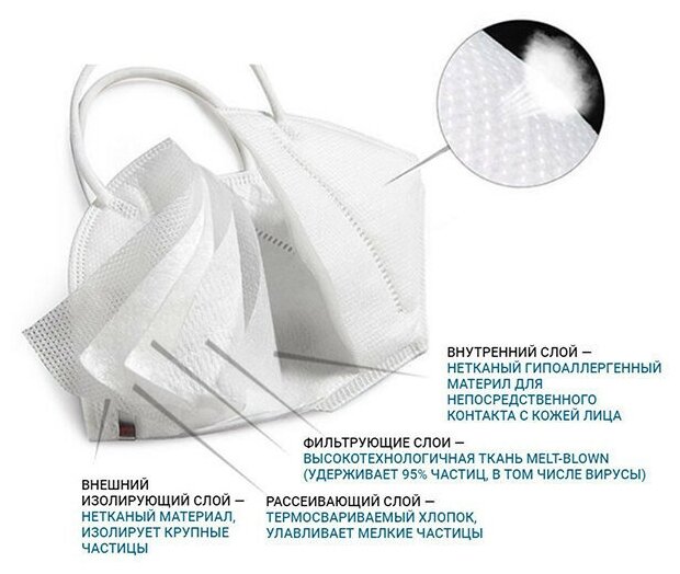 Маска медицинская Респиратор-маска для лица KN95/FFP2 (5-слойная, 5-шт в упаковке) - 4 шт