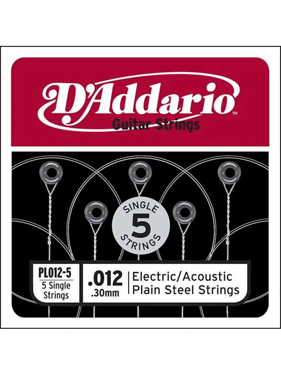 Струны PL012-5 Plain Steel Отдельная стальная струна без обмотки 012, 5шт, D`Addario