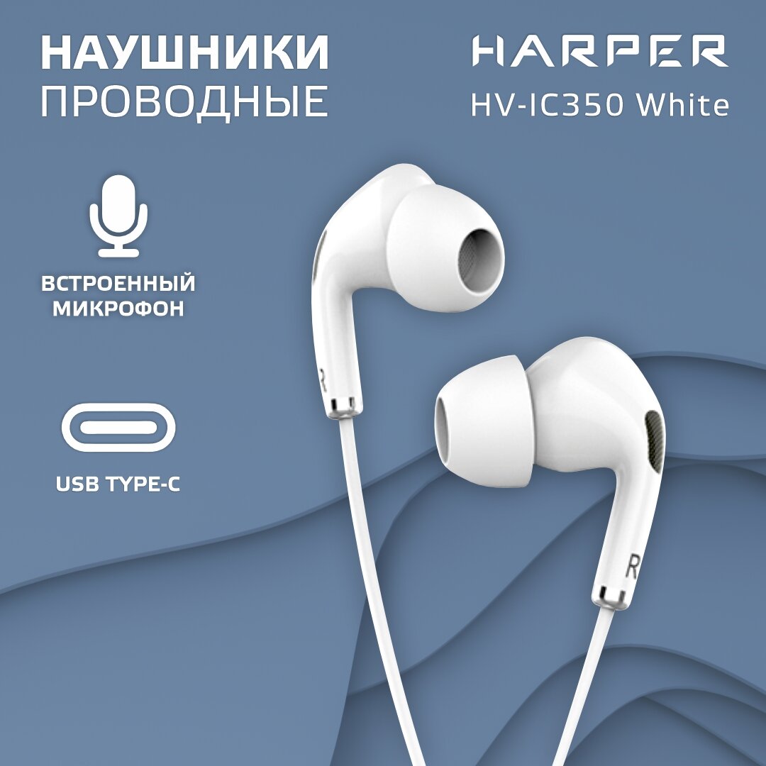 Наушники Наушники внутриканальные проводные HARPER HV-IC350, белый, Type-C