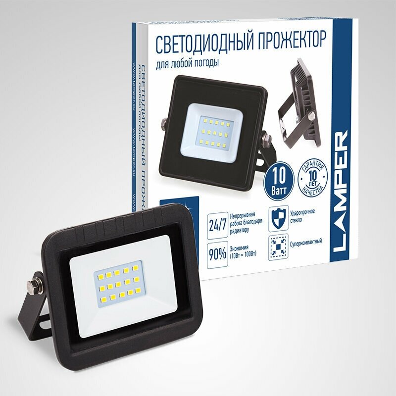 Прожекторы и уличное освещение Прожектор светодиодный уличный садовый LAMPER с холодным белым свечением 6500 К, 10 Вт