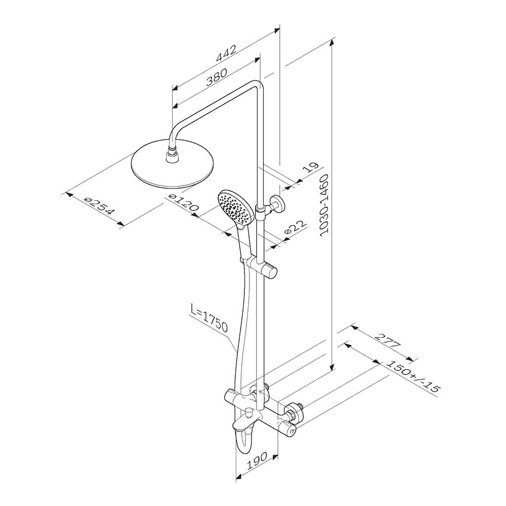 | Комплектация | ручной душ / верхний душ / смеситель / стойка / штанга / душевой шланг / крепление ручного душа |