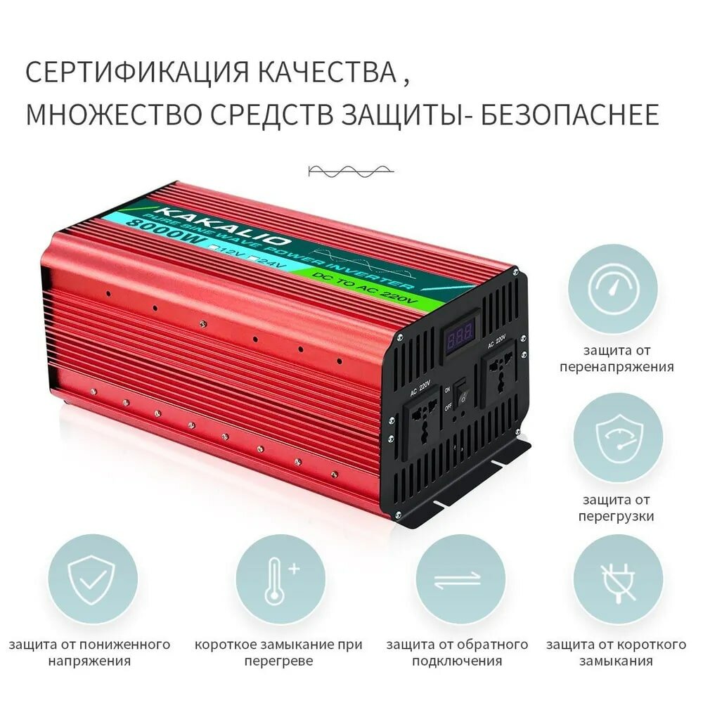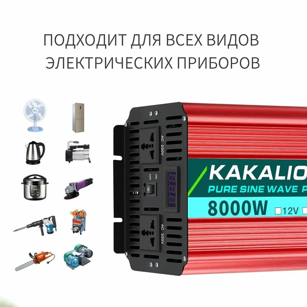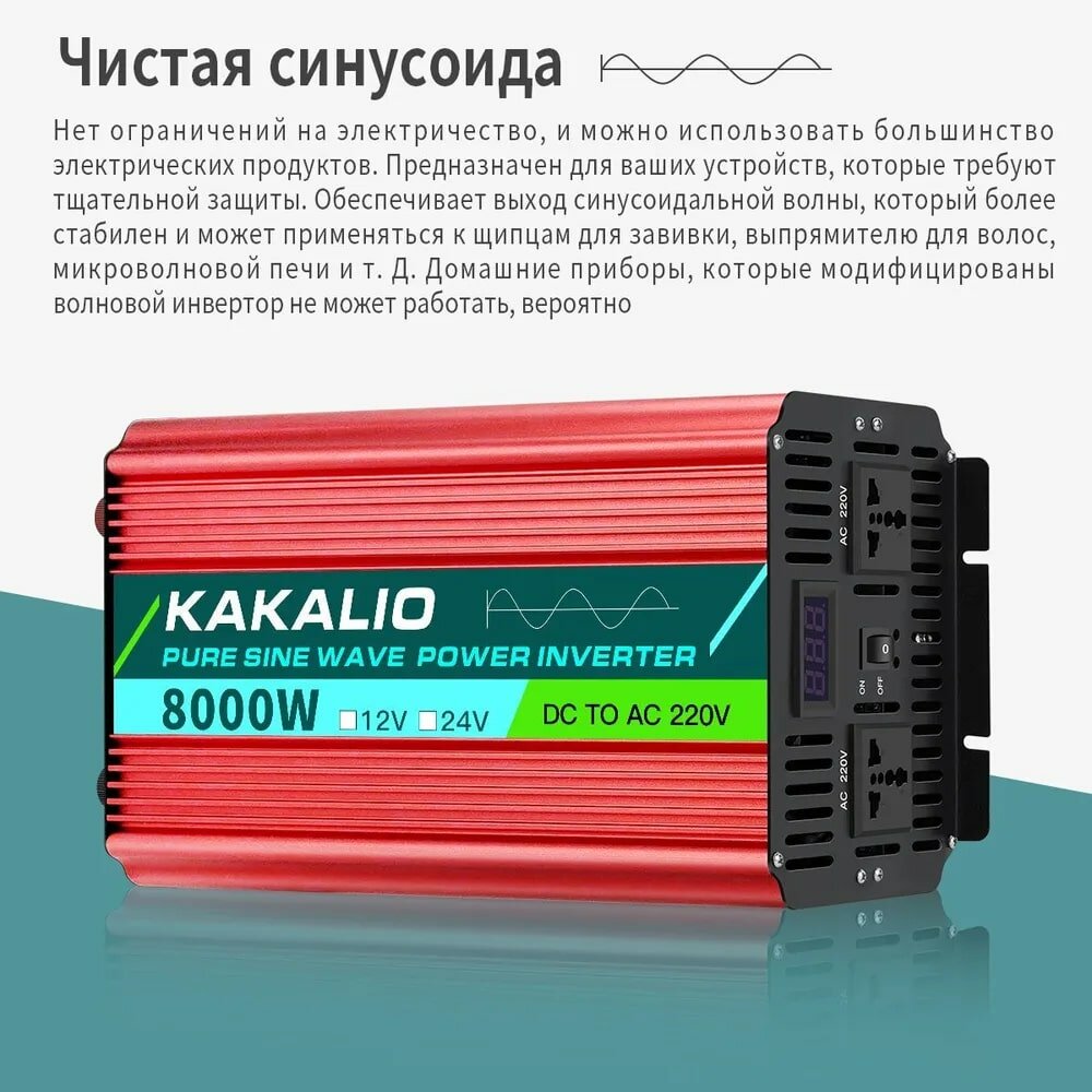 Лучшие цены. Автомобильный инвертор Kakalio: мощный и надежный Автомобильный инвертор Kakalio обеспечивает стабильное и эффективное преобразование напряжения 24V в 220V. С мощностью 8000W, он способен обеспечить работу большинства электроприборов в автомобиле, включая холодильник, телевизор, ноутбук и многое другое. Превосходная производительность и надежность Kakalio зарекомендовал себя на рынке автомобильных инверторов благодаря своей надежности и высокой производительности. Магазины в вашем городе.