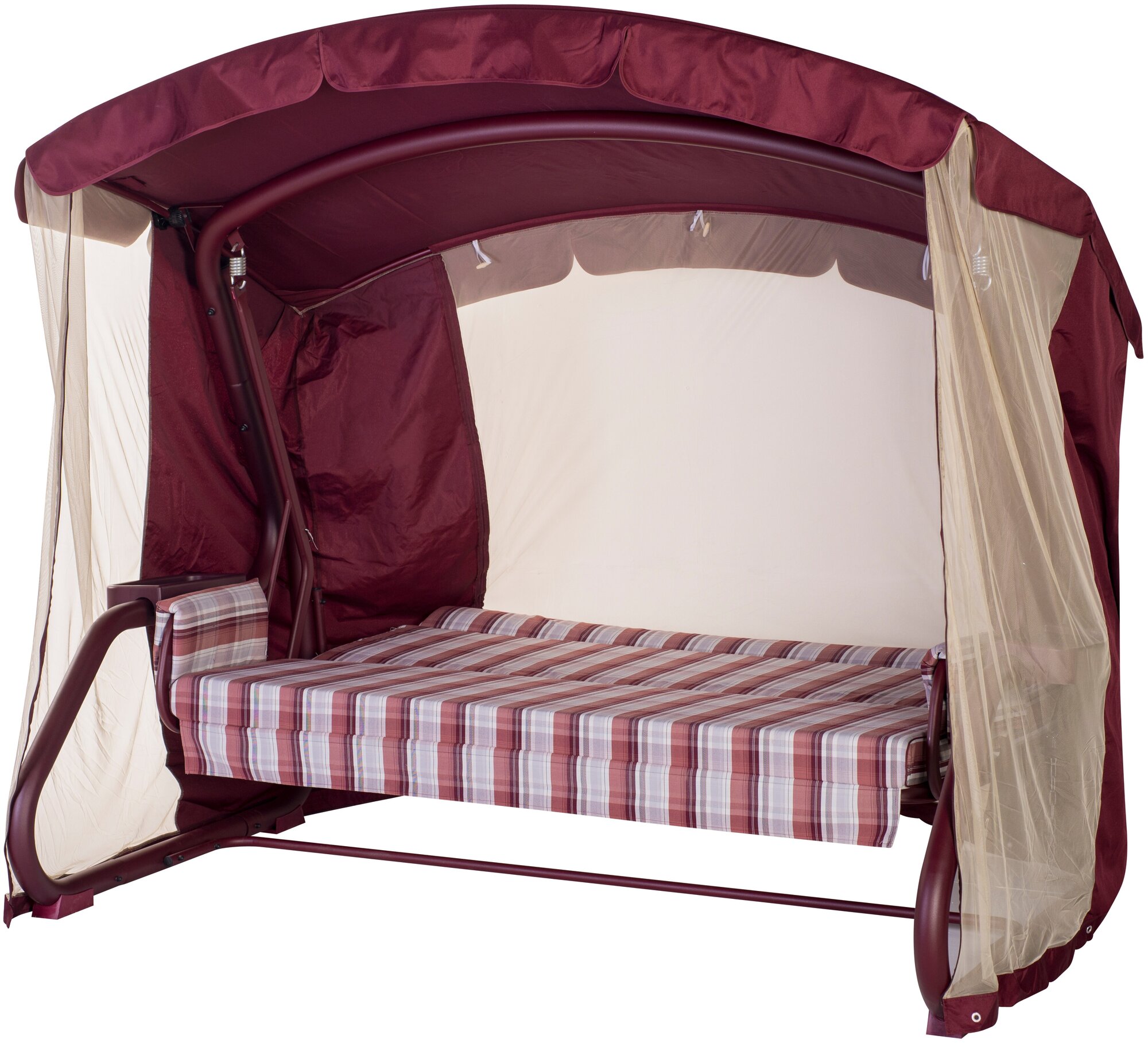 Садовые качели 3-местные с москитной сеткой Мерида Премиум бордовый
