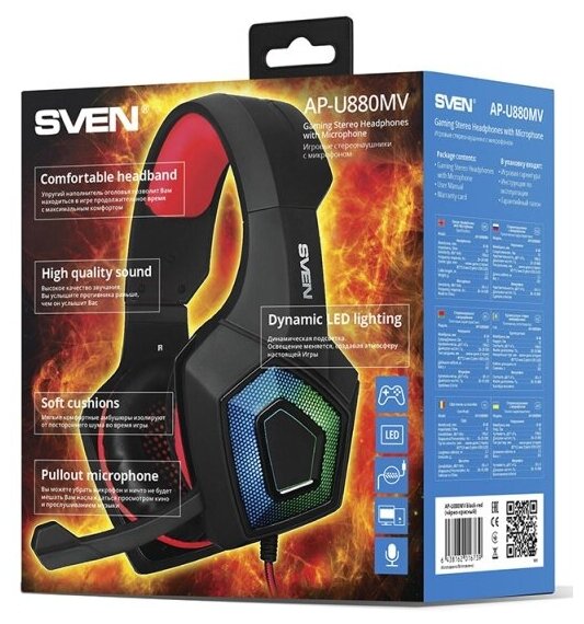 Наушники Sven AP-U880MV игровые, с микрофоном, чёрно-красный