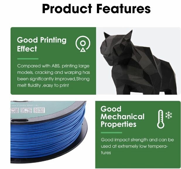 ABS+ пластик eSUN для 3D принтера 1.75 мм, Чёрный, 1 кг