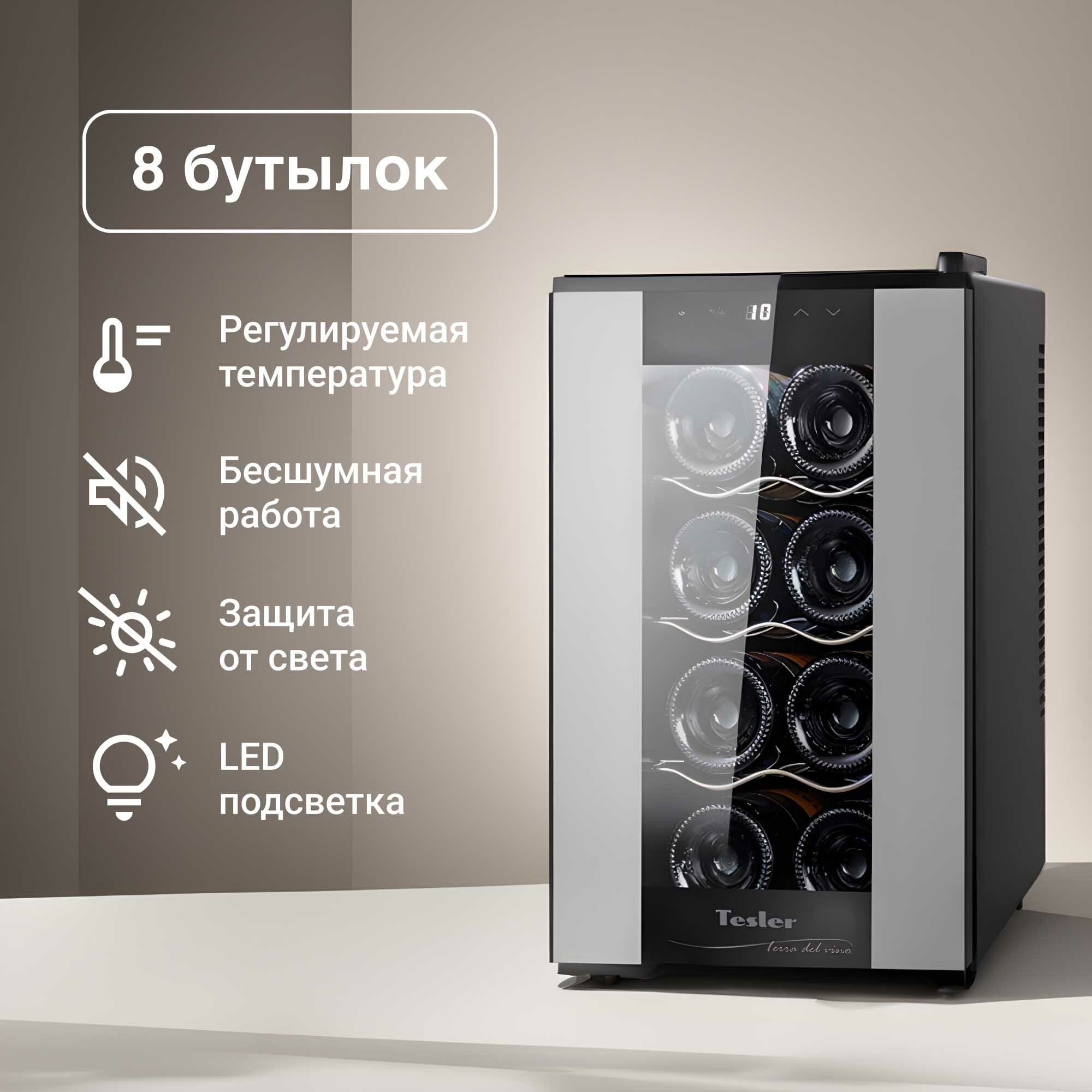 Винные шкафы Винный шкаф TESLER WCV-080 SILVER