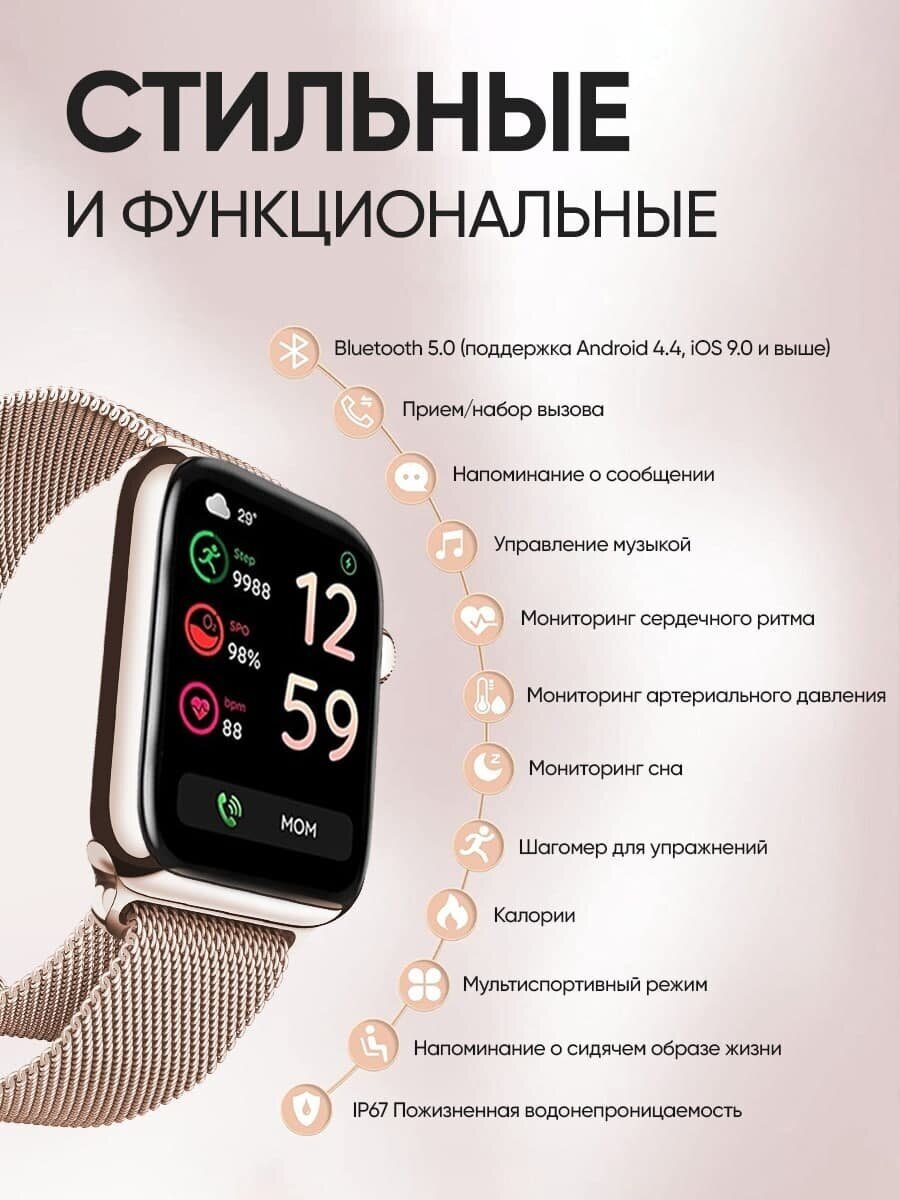 Смарт часы женские SmartLux, умные часы Smart watch 8, розовые 2 280 ₽ Подробнее