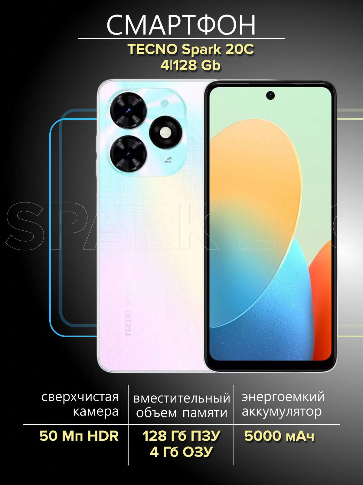 Смартфон TECNO Spark 20C 4/128 ГБ, Dual nano SIM, Mystery White