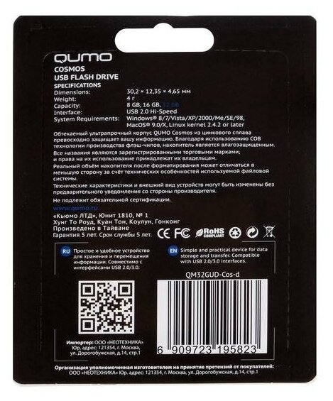 Qumo Cosmos (QM32GUD-Cos) USB2.0 Flash Drive 32Gb (rtl)