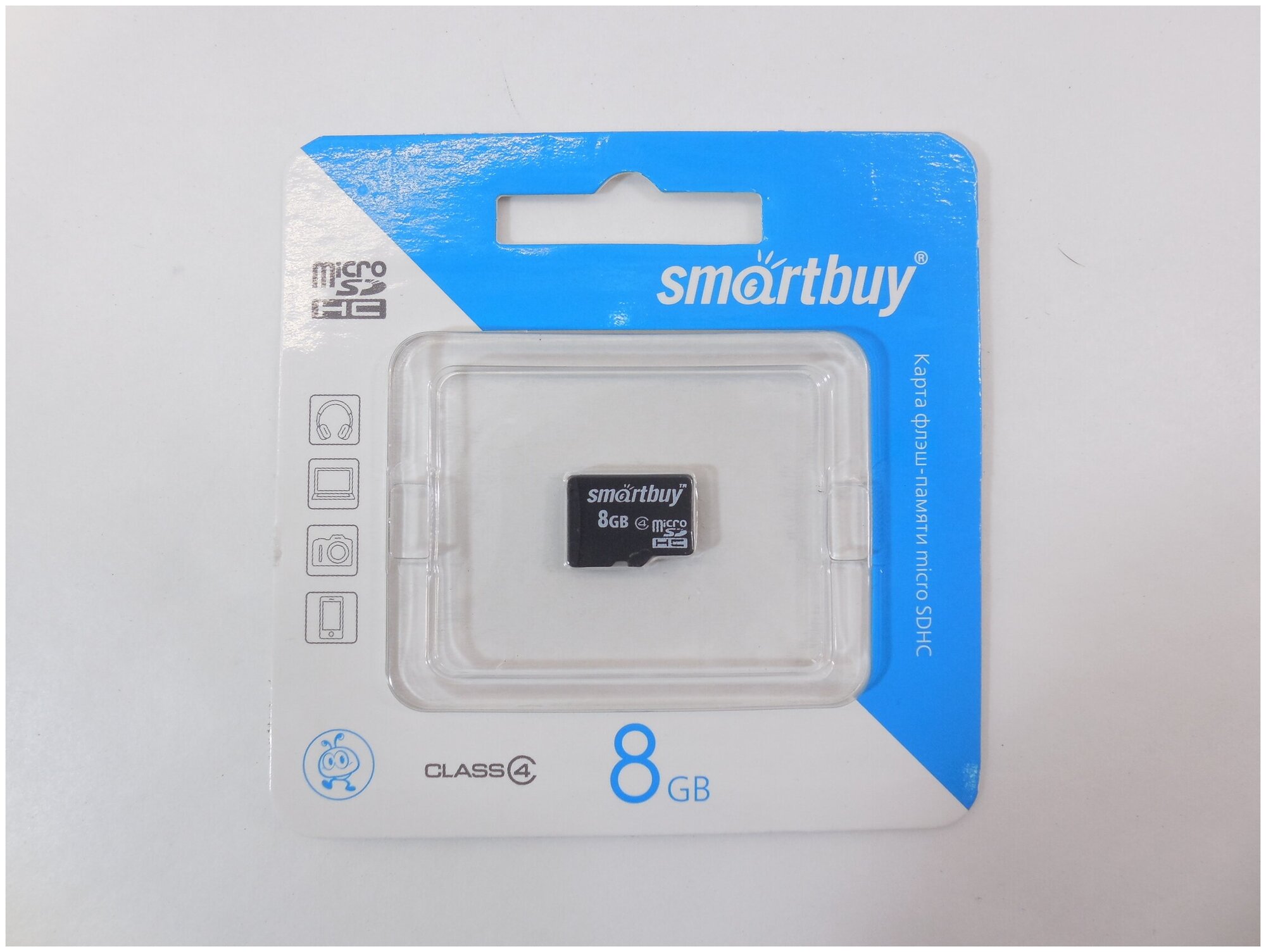 micro SDHC карта памяти Smartbuy 8GB Сlass 4 (без адаптеров)