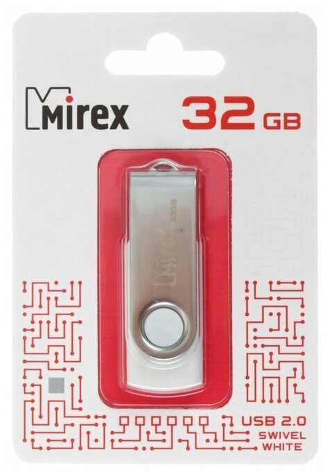 Флешка Mirex SWIVEL WHITE, 32 Гб, USB2.0, чт до 25 Мб/с, зап до 15 Мб/с, белая