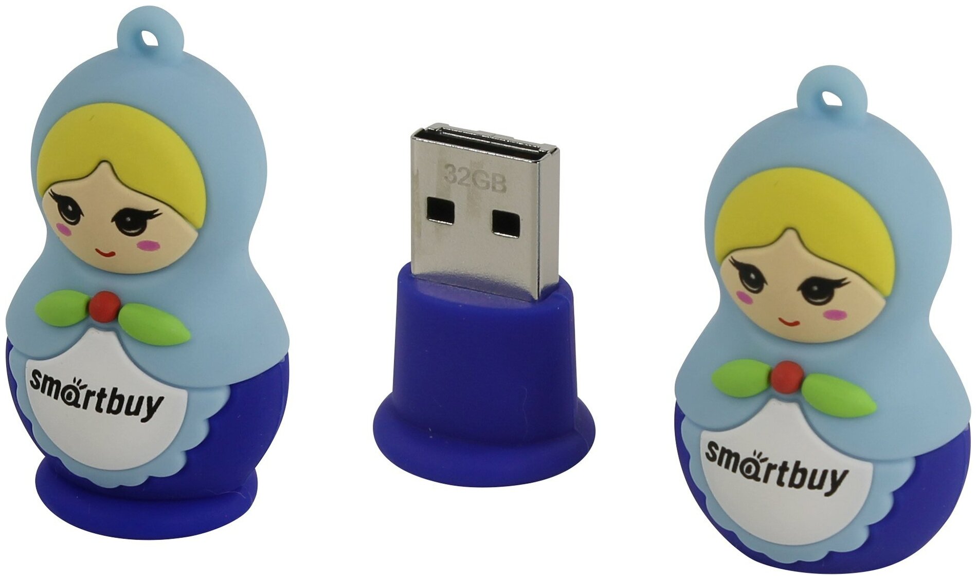 USB Flash (флешка) Флешка SmartBuy Wild series Matrioshka 32 ГБ, 1 шт., голубой/синий