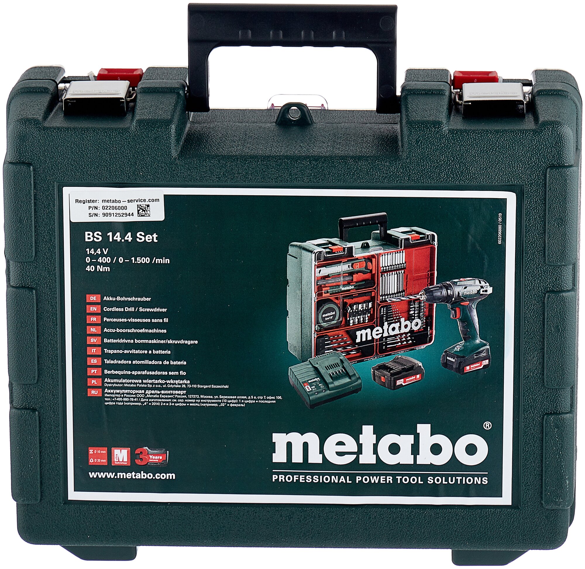 Дрель-шуруповерт аккумуляторная Metabo BS 14.4 2х2.0Ач Lilon c набором